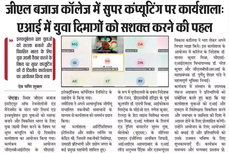 Organized in collaboration with U.P. Electronics Corporation Limited (UPLC), this two-day online workshop (28th-29th November 2024) will equip startups and young entrepreneurs with hands-on knowledge in AI/ML powered by NVIDIA DGX100 servers. It will showcase applications across industries, real-world case studies, and government use cases like public safety, healthcare, and smart cities. Participants will gain practical skills, networking opportunities, and a competitive edge.